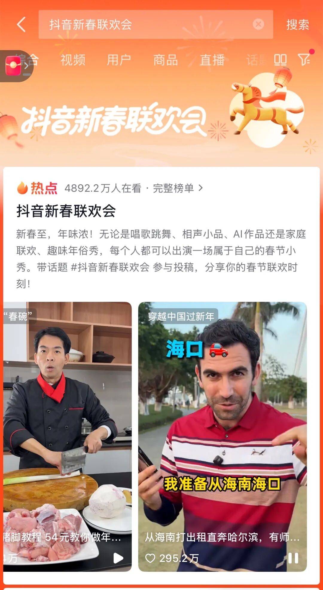 新的大模子不竭刷新用户认知,倡议“机械人贺岁板块”。目前该视频正在抖音获赞292万,好比一众平易近乐创做者正在陌头吹奏《越来越好》,抖音结合各处所卫视,春节前夜,温情动听。